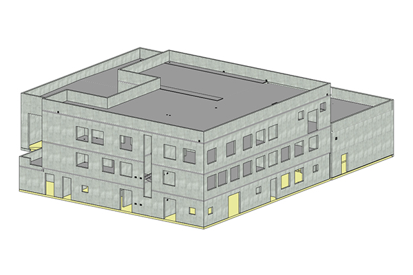 Bei der Tragkonstruktion des Rohbaus handelt es sich um einen Stahlbeton-Massivbau mit einem hohen Teilvorfertigungsgrad. Die Wände des Haupthauses tragen ihre Lasten teilweise als wandartige Träger ab. Die Fahrzeughalle ist mit einer Stahlkonstruktion und Trapezblechen überdacht. Das gesamte Gebäude ist über Schichten aus Magerbeton im tragfähigen Kiessand gegründet. Die Dächer beider Gebäudeteile sind extensiv begrünt und mit einer Photovoltaik-Anlage ausgestattet.